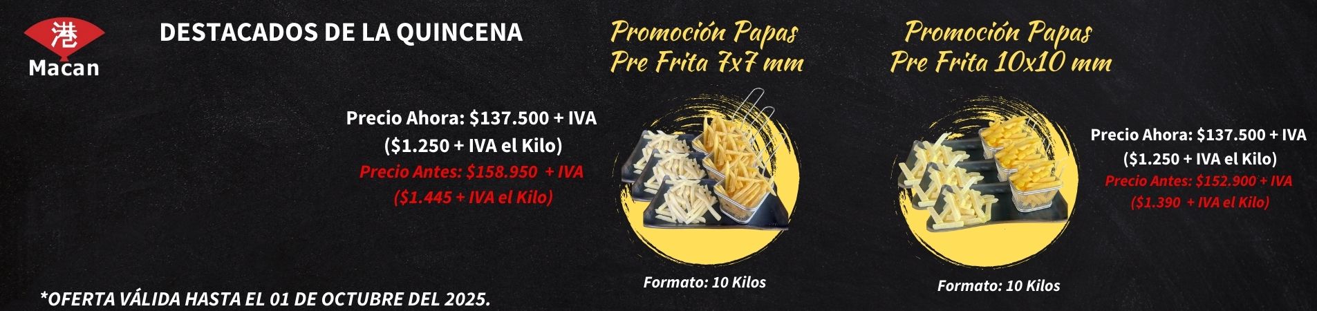 Papas Pre-Fritas 10x10 $14.500 +IVA